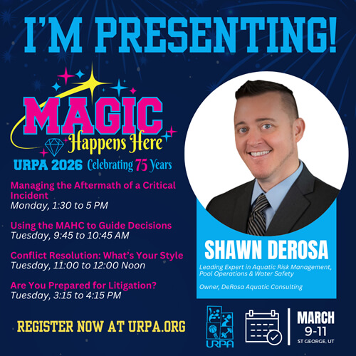 Shawn DeRosa is one of the nation's leading experts in managing recreational risks. As owner of DeRosa Aquatic Consulting, Shawn helps agencies minimize risks and improve safety through consulting services and high-quality education and training programs. He has been recognized three times by Aquatics International Magazine as one of the "Power 25" leaders in the aquatics industry.