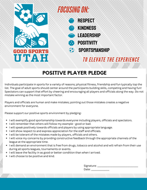 The resources below were created to help the process of spreading and enforcing positive sportsmanship for youth sports throughout Utah. Feel free to share with your agency!